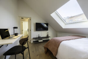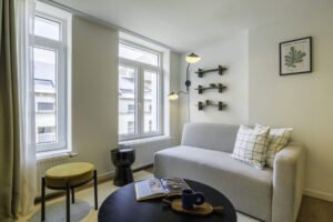 Description: This comfortable, fully furnished apartment in Ixelles, is ideal for temporary stays. It's located in a vibrant and trendy neighborhood with great public transport access, perfect for professionals who want to feel at home. The rent includes all charges like water, electricity, gas, insurance, taxes, wifi, smart TV, weekly apartment cleaning, working desk and expat support. Throughout your stay, you'll have a dedicated contact and technical support, with all admin tasks handled. Our secured building offers safety, and the rental contract requires a minimum 3-month stay. You can also domiciliate here, making it convenient for official residency in Brussels. Rue Souveraine is a central area with shops, restaurants, and bars, perfect for EU institution workers, located near Louise shopping district, the Ixelles Ponds, Chaussée d'Ixelles & the European Quarter. Transport is convenient with quick access to multiple metro & tram lines at Louise station (10 minutes walk), which gives you quick access to main areas in Brussels.