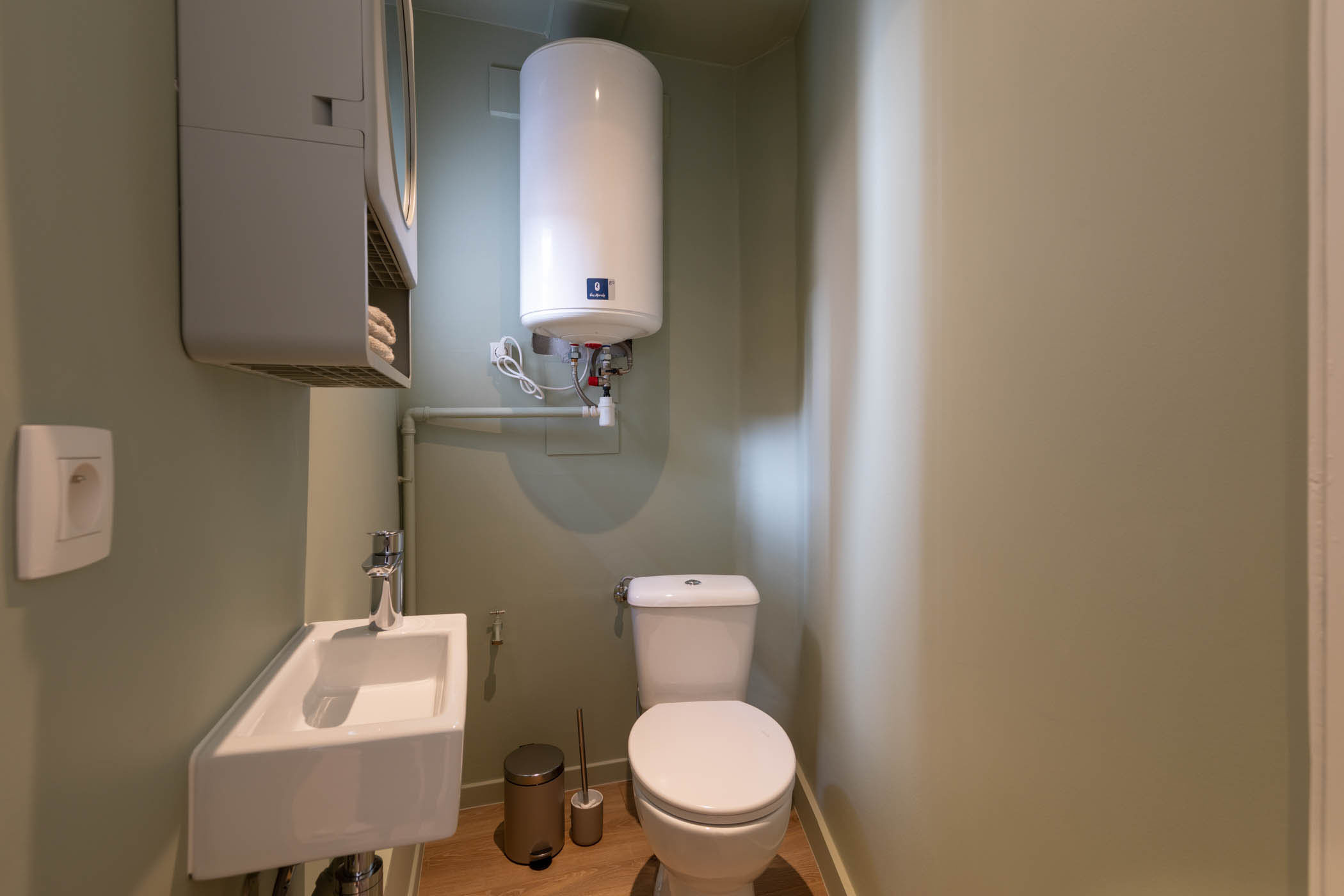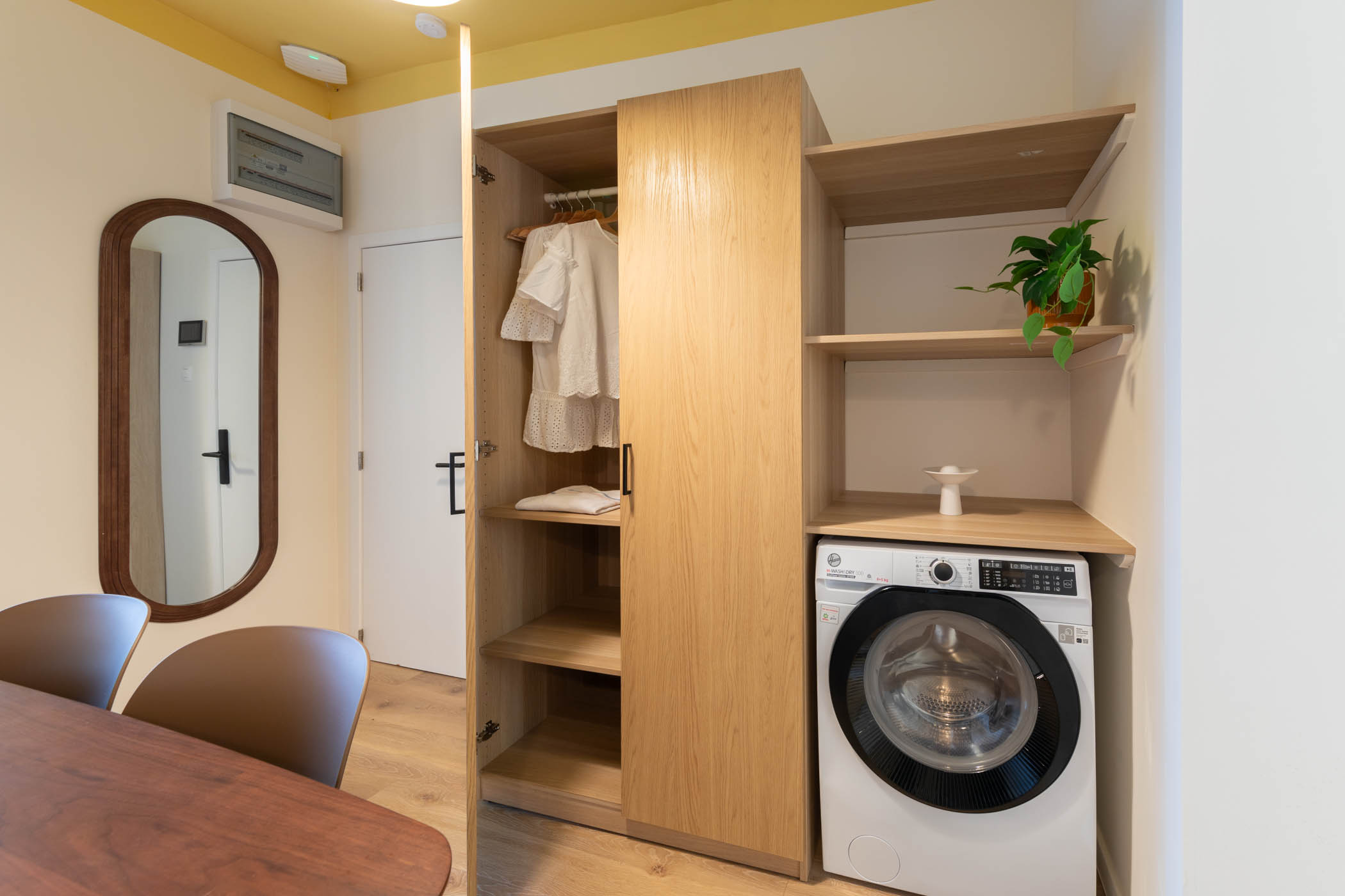 This modern, fully furnished studio apartment in central Antwerp is ideal for temporary stays, especially for working professionals or students.
