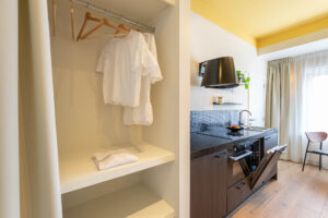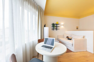 The rent includes all charges like water, electricity, gas, insurance, taxes, wifi, smart TV, weekly apartment cleaning, working desk and expat support. The apartment shares a laundry room with just one other unit, conveniently located on the same floor. Car parking is available as an optional service for an additional charge—please contact us for more details. The all-inclusive rent includes weekly cleaning of your apartment and a dedicated support team that helps with admin, maintenance, and practical questions.