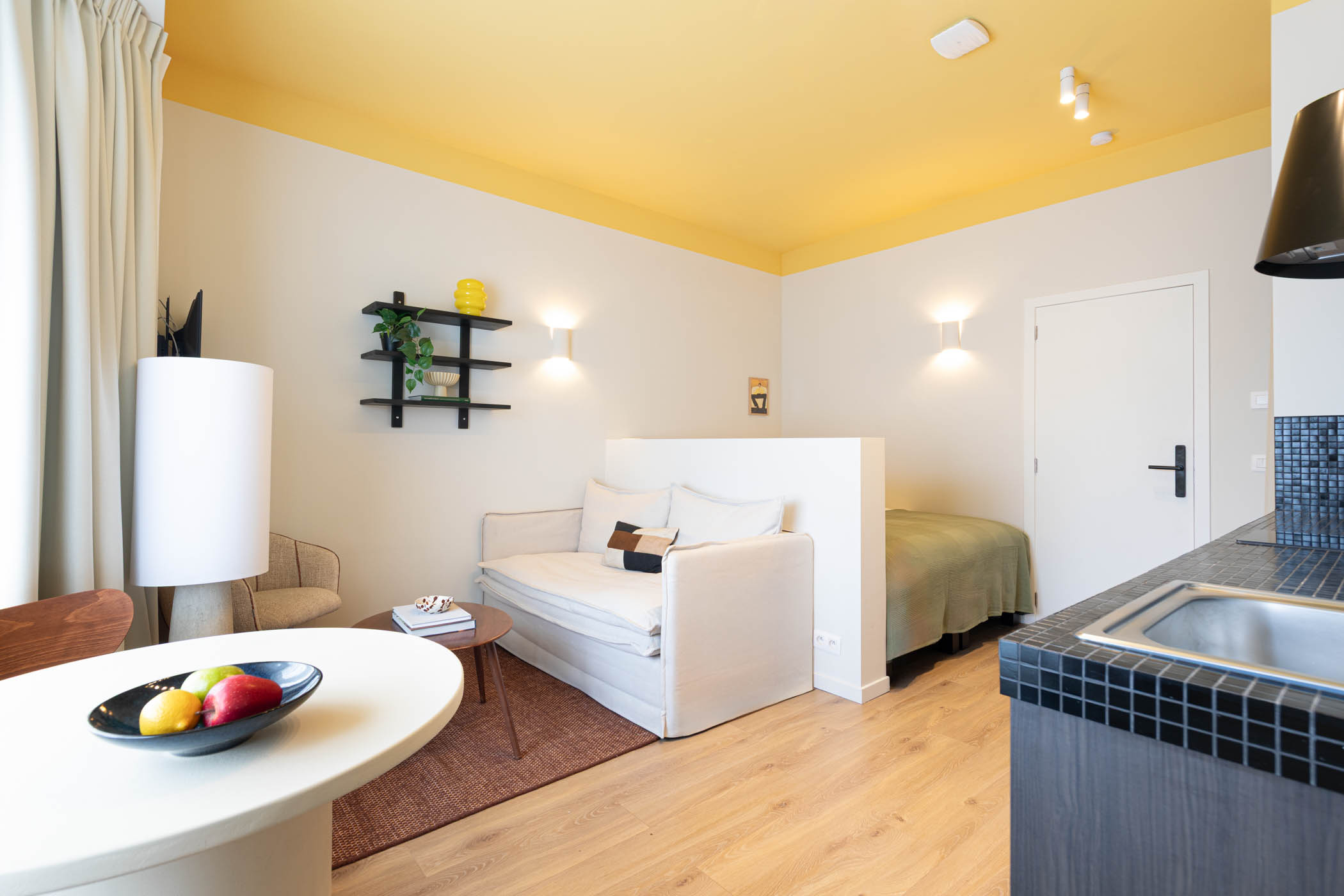 This modern, fully furnished studio apartment in La Chasse, Etterbeek, is ideal for temporary stays, especially for those working in the European Quarter.