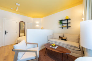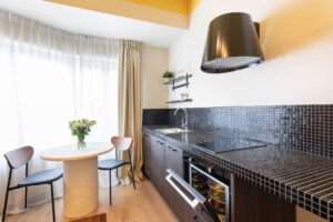The rent includes all charges like water, electricity, gas, insurance, taxes, wifi, smart TV, weekly apartment cleaning, working desk and expat support. The apartment shares a laundry room with just one other unit, conveniently located on the same floor. Car parking is available as an optional service for an additional charge—please contact us for more details. Throughout your stay, you'll have a dedicated contact and technical support, with all admin tasks handled.