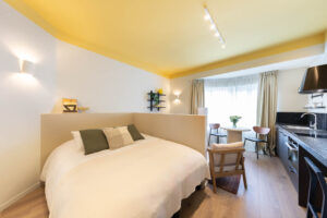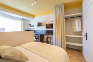 Amenities: Common laundry (1 per floor)Digital keysElectronic inventoriesIron and ironing boardMaintenance teamSecurity 24/7Working desk